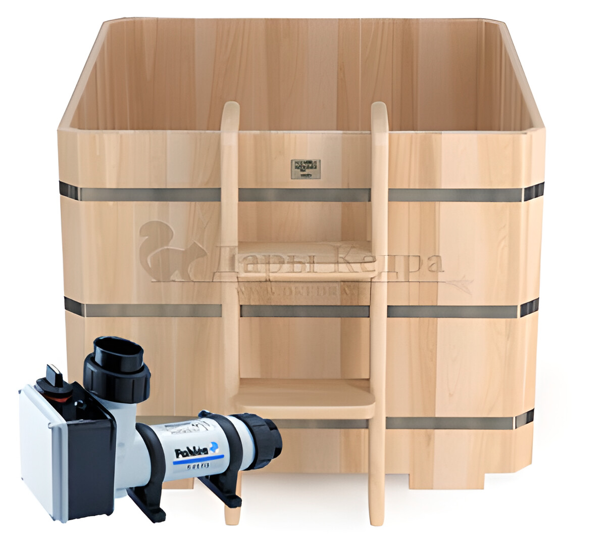 • Квадратная композитная купель «Кварта 200» Это купель с квадратной внутренней чашей, которая изготовлена из современного прочного и термоустойчивого материала (композита). Форма чаши обеспечивает комфортную посадку внутри изделия. Для удобного использования купель оснащена приставной лестницей. Обручи из нержавеющей стали декорируют купель с композитом и равномерно распределяют нагрузку во время процедур. Подходит для установки в помещении и на открытом воздухе. При уличном использовании, рекомендуется дополнительно оборудовать купель водогрейной твердотопливной печью. Композитная вставка облегчает уход за изделием и увеличивает срок службы купели.