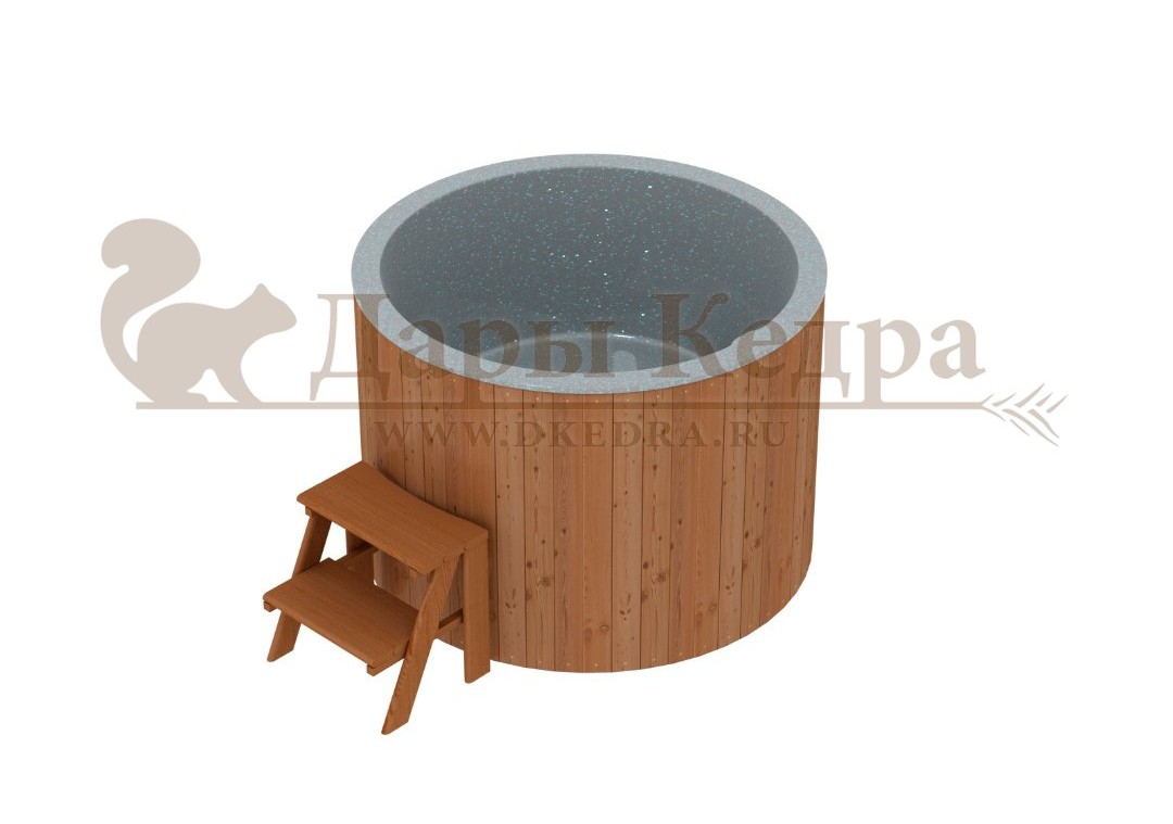 Вот такая купель стоит в семейном отеле. За счет пластиковой вставки легко мыть после большого потока клиентов. Пользуемся давно, поэтому на качество проверили!