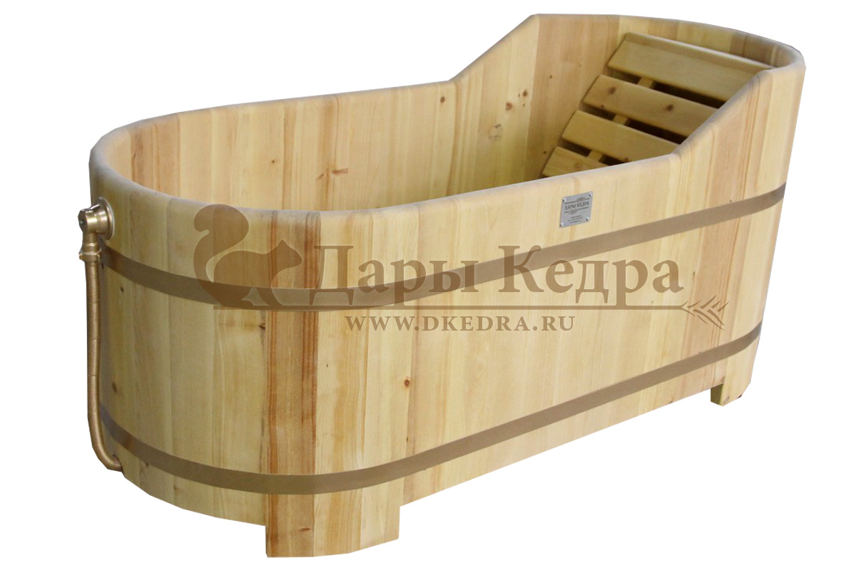 • Деревянная ванна из кедра Деревянная ванна из кедра создаст уютную атмосферу в вашей ванной комнате, бане или спа-салоне. При взаимодействии кедра с водой активируются эфирные масла и фитонциды, что делает принятие ванны не только приятным, но и полезным. Ванна оснащена подспинником, поэтому во время процедур можно принять удобное положение. При правильном уходе срок службы изделия более 20 лет.