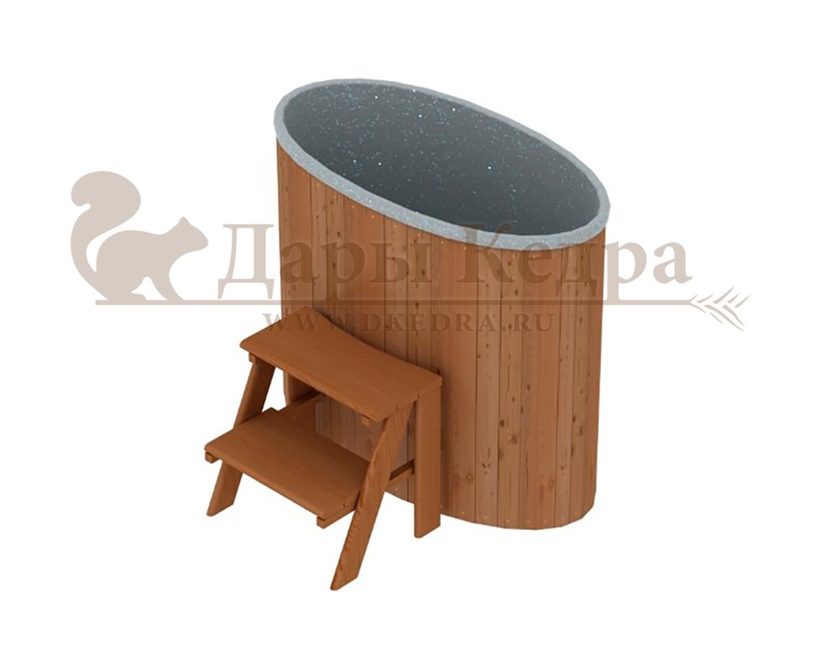 • Гладкая столярная овальная купель из кедра с пластиковой вставкой Это емкость для воды с овальной пластиковой чашей. Купель предназначена для отдыха и охлаждения тела после процедур парения. Подходит для уличного и комнатного использования. Для удобства пользования овальная купель с пластиковой вставкой оснащена лавочками, приставной и внутренней лестницей из кедра. Купели с пластиковой вставкой рекомендуется заказывать для непрерывного использования в банных комплексах или оздоровительных центрах. Внутренняя чаша облегчает уход за изделием и увеличивает срок службы купели.