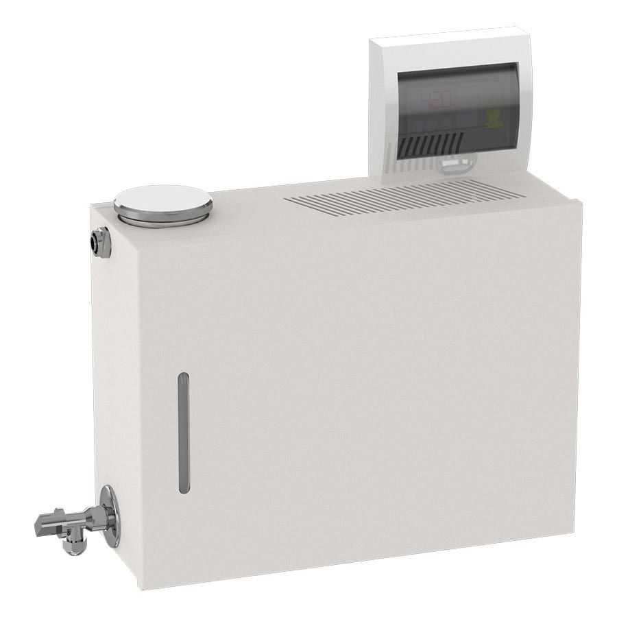 Парогенератор проточный c выносным/встроенным цифровым пультом управления, 12 кВт Проточные парогенераторы подключаются к водопроводу и автоматически добавляют воду в прибор при ее расходовании. Парогенератор служит для образования пара в саунах, хамамах, банях и душевых кабинах. Мощность стоит выбирать в зависимости от объема парной. Работа парогенератора осуществляется за счет встроенного или выносного пульта управления (на ваш выбор). Он позволяет устанавливать температуру, мощность и время процедур парения. При достижении необходимой температуры происходит автоматическое прекращение подачи тепла для нагрева воды. При снижении температуры более чем на 3°С температурный датчик снова включает подогрев. Таким образом время непрерывной работы парогенератора составляет более 12 часов.